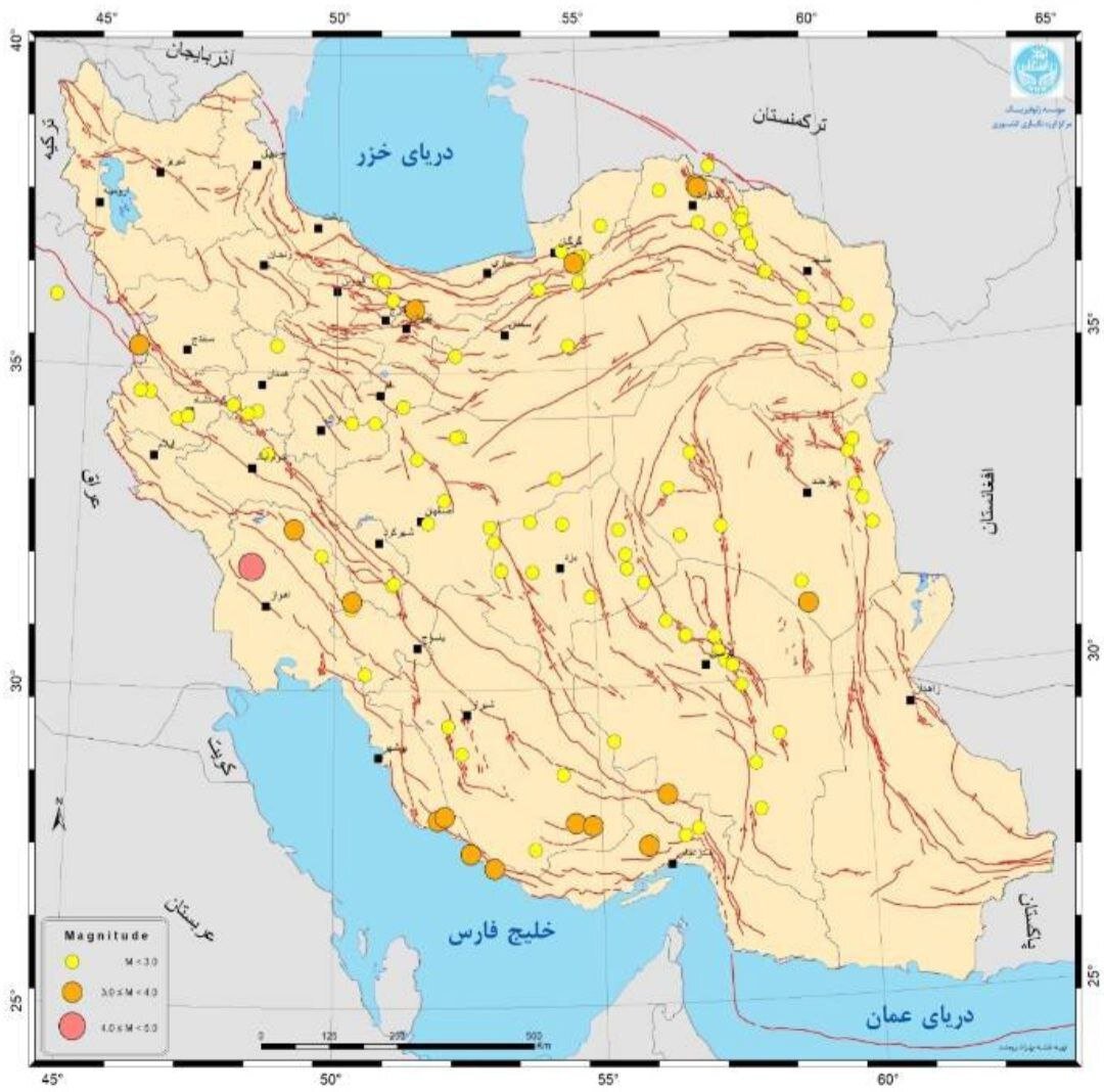 Tehran – A total of 119 earthquakes were recorded nationwide in a week, according to the Earthquake Network of the Institute of Geophysics at the University of Tehran Geophysics.