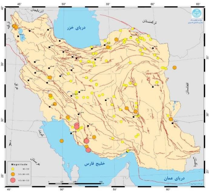 Statistically, there are 105 earthquakes with a size of less than 3. An earthquake of 19 size between 3 and 4. According to the IRNA, four earthquakes occurring in the country, ranging from 4 to 5.