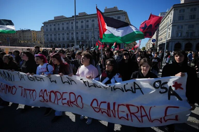In Italy, people took them to the streets on Friday as part of a day’s general strike strike called by the union to support the aid fleet. The CGIL Trade Union held demonstrations in over 100 cities. In Rome, crowds marched from central Vittorio towards the main train station, waving unions and Palestinian flags and raising flags. Several reports suggest that over a million people attended the rally.