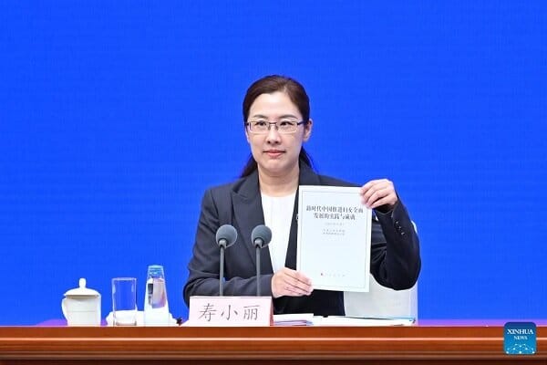 The journalist read a copy of a white paper titled “China’s achievements in the balanced development of women in a new era,” announced by the State Council Information Bureau (SCIO) at a press conference held in Beijing, China’s capital, on September 19, 2025.