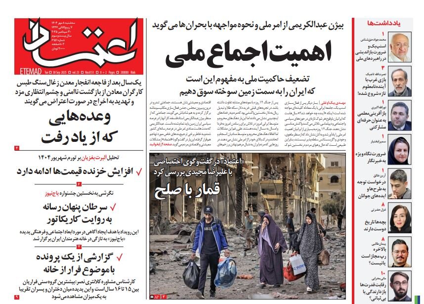 Hamshahri writes: The revitalization of the snapback mechanism (by the European troika in Britain, France and Germany) has resulted in reimposed UN sanctions on Iran. The main question now is whether these sanctions can stop Iran’s nuclear program, or simply increase diplomatic and economic pressures. It must be said that political consensus is the first condition of validity. Whenever Russia or China is likely to oppose a dramatic measure or reject a solution, the effectiveness of sanctions and the Security Council’s decision will weaken. Implementing sanctions requires monitoring of technical legal cooperation in third countries to prevent sanctions from being avoided. Countries that want to avoid that can rely on alternative tools and paths. Ultimately, the pressure and unilateral actions of Chapter 7 allow the other side to return to the negotiation table, but the sustainability of the agreement requires structural and political assurance.