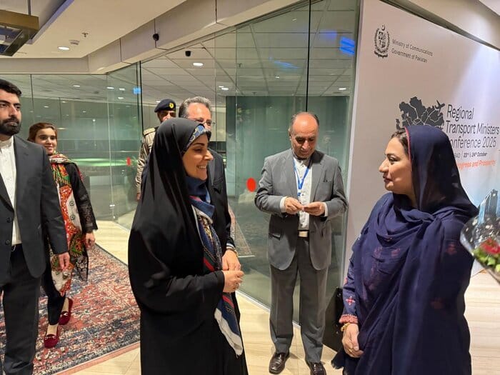 Upon arriving at Islamabad International Airport, Farzaneh Sadegh and his accompanying delegation were welcomed by high-ranking officials from Pakistan’s Ministry of Communications, as well as Chargé d’Affaires of the Iranian Embassy in Islamabad, Navi Shirazi and others.