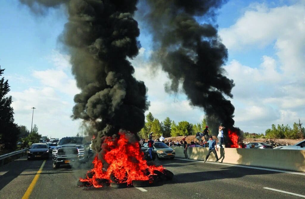 Israel Channel 12 reports that protesters blocked the southbound Eyan Highway in Tel Aviv on Tuesday morning, demanding a prisoner of war and a ceasefire in Gaza.