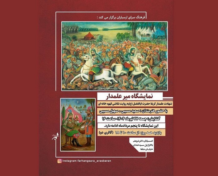 TEHR – The “MiR-e Alamdar” exhibition centered on Hazrat Abbas (AS), a brother of Imam Hussein (AS)’s brother (AS) at the Battle of Ashura in 680, was launched at the Alasbara Cultural Centre in Tehran on Friday.